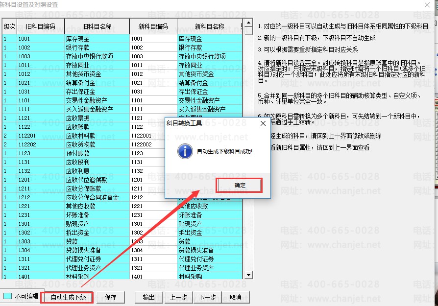 5.点击【下一步】操作,进行科目转换,弹出【转换报告】窗口,提示转换成功。
