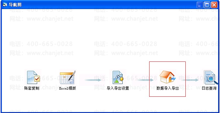 2、注册控制台确定后,进入“导航图”界面选择数据“导入导出”如下图;