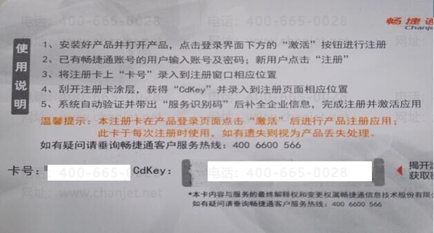 解决方案:输入畅捷通账号和密码,就会自动带入卡号和CDKEY,然后进行激活即可。