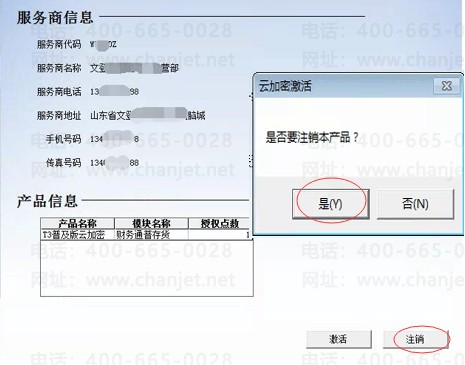2、在服务商信息右下角点击“注销”,会提示是否要注销本产品?点击“是”后,之前的用户信息和产品信息会全部清空。