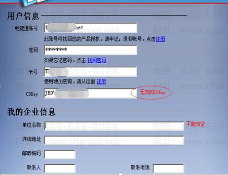 1、输入完畅捷通帐号、密码、卡号和CDKey后,提示无效的CDKey。首先是确定CDKEY是否输入正确,如果与ID卡号完全一致,请致电4006600566-4反馈。