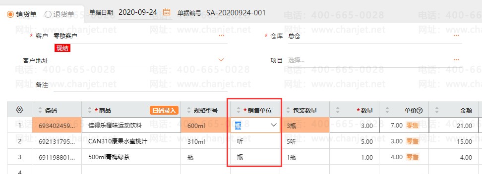 【4-销货时自动带出“瓶”】