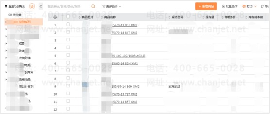 商品种类、品牌或适配车型多,适用于按类型用途+品牌来进行分类,明细的商品信息在档案中用具体型号+适配车型组合维护,如某轮胎属于轮胎系列下的某个品牌,同时该轮胎规格和适配车型在明细档案中体现,当业务员报价或客户询价时,可以快速定位商品且根据适配车型判断汽修厂的终端客户对商品受众情况。
