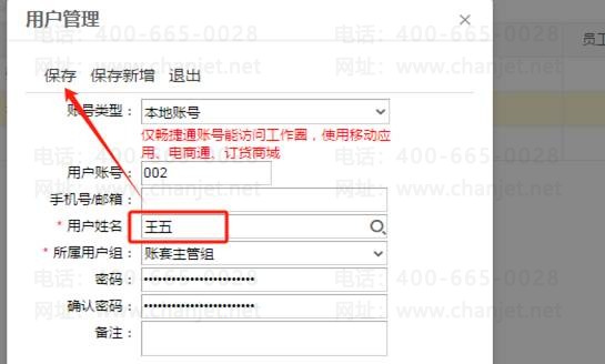 3、补充:如果某员工离职了,需要把这个离职员工的用户账号给新来员工使用,用户账号不变,那么就需要把用户姓名改成新员工的姓名,双击打开离职员工账号,在用户姓名处改成新员工名字并保存即可,如图下: