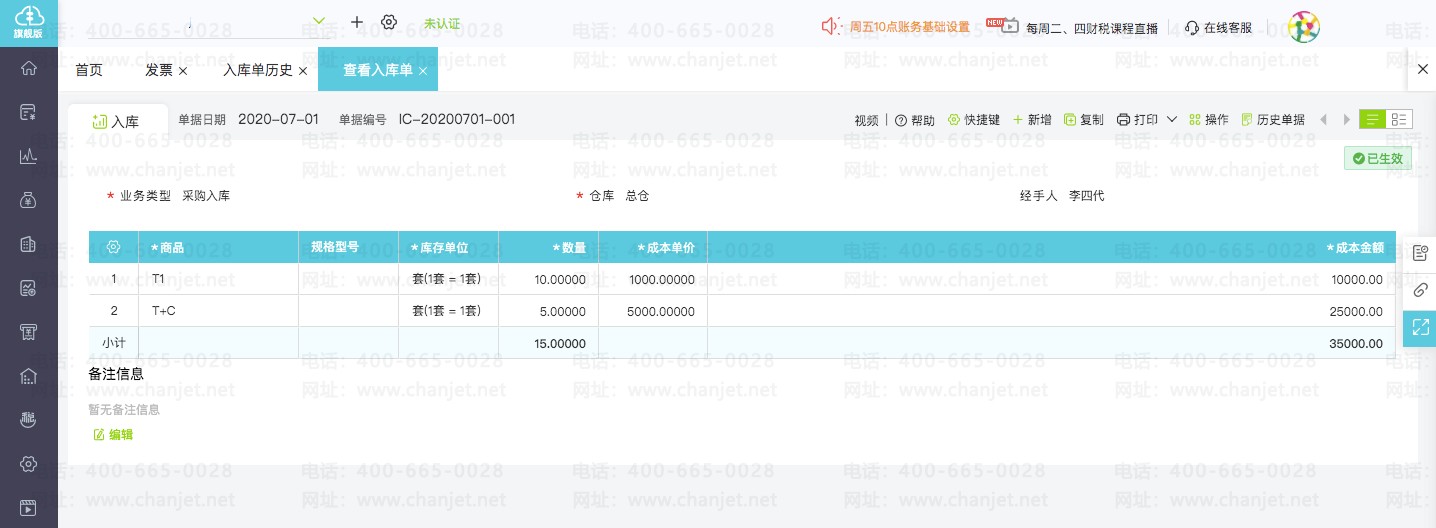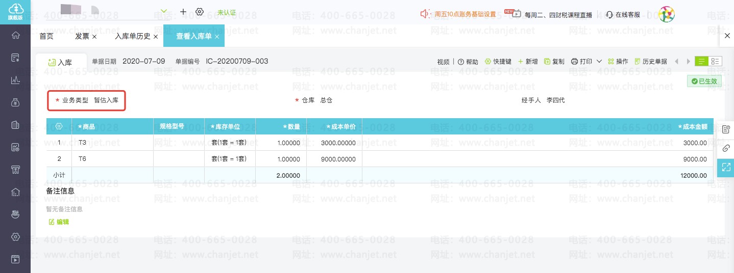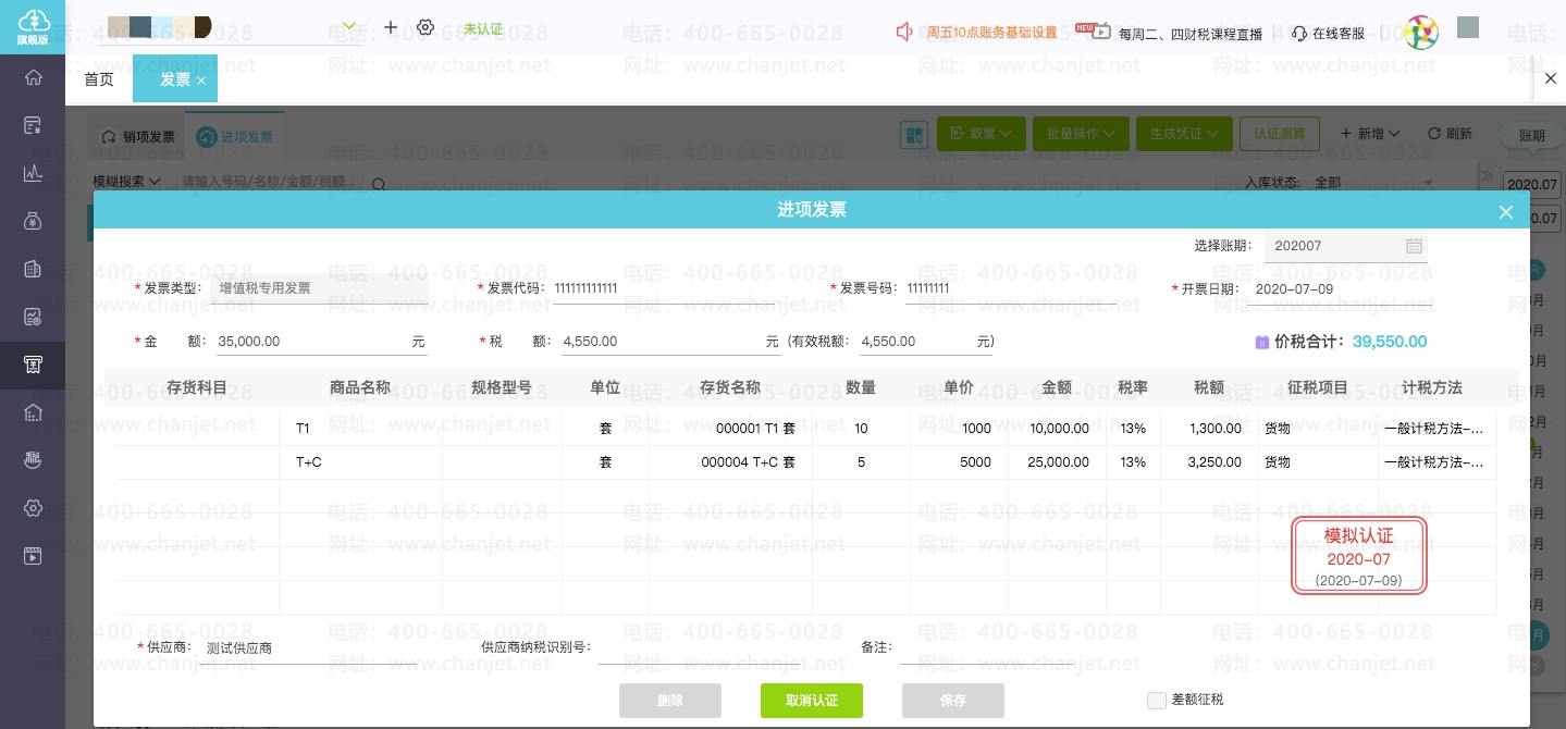 3、最后再通过一键取票或手工录入进项发票,自动生成采购入库单,步骤同上。