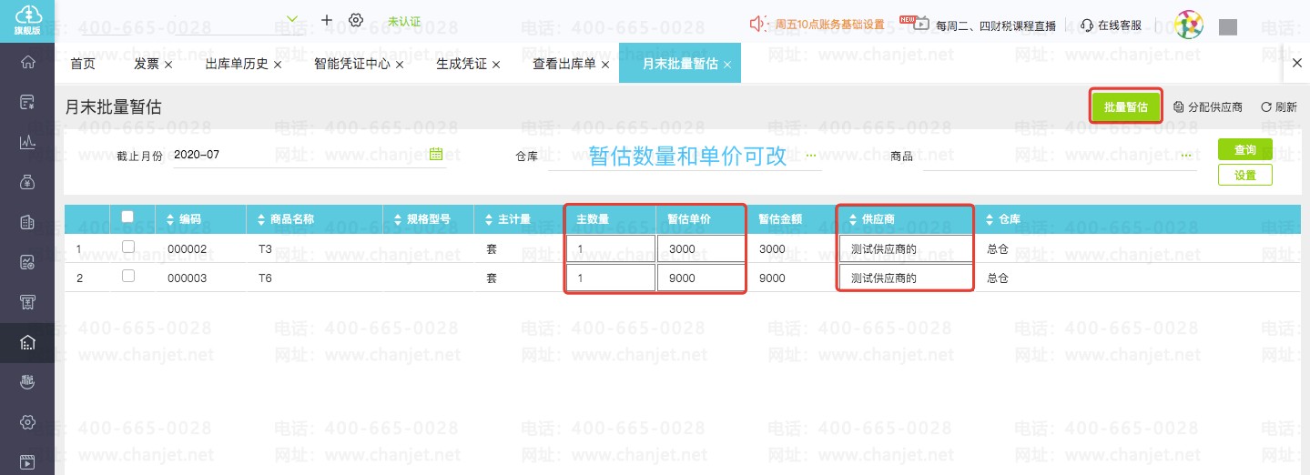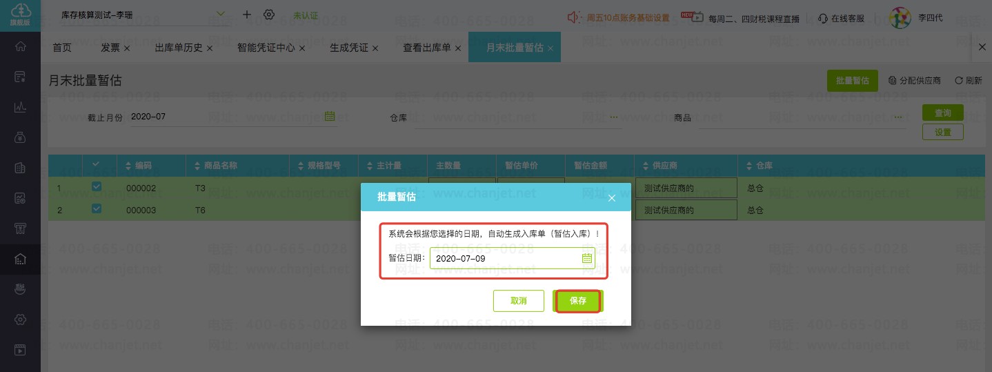 3、月末系统自动进行批量暂估处理,选择供应商,系统自动生成暂估入库单。