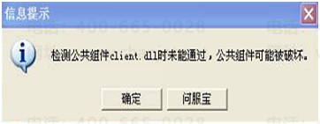 还有在Xp系统安装了T3客户端,登软件后打开任意模块提示【检测公共组件client.dll时未能通过,公共组件可能被破坏】。如下图: