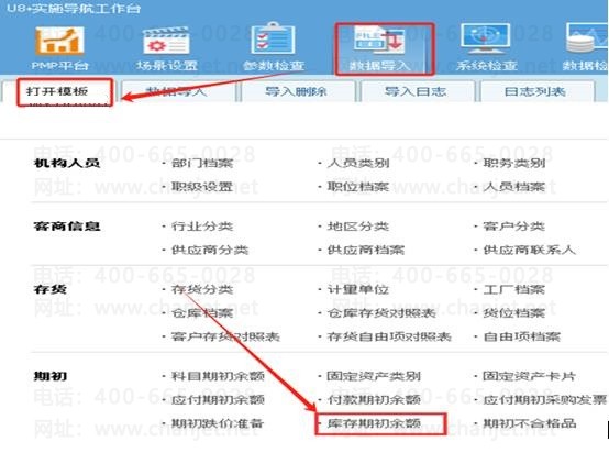 1、进入用友U8+系统,点击实施导航-数据导入-打开模板,选择“库存期初余额”双击打开,如图下: