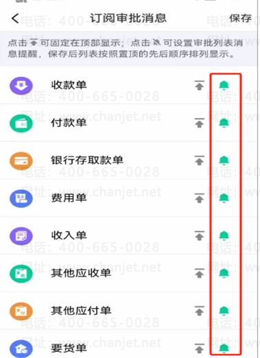 5、然后点击需要屏蔽单据对应铃铛即可,如图下: