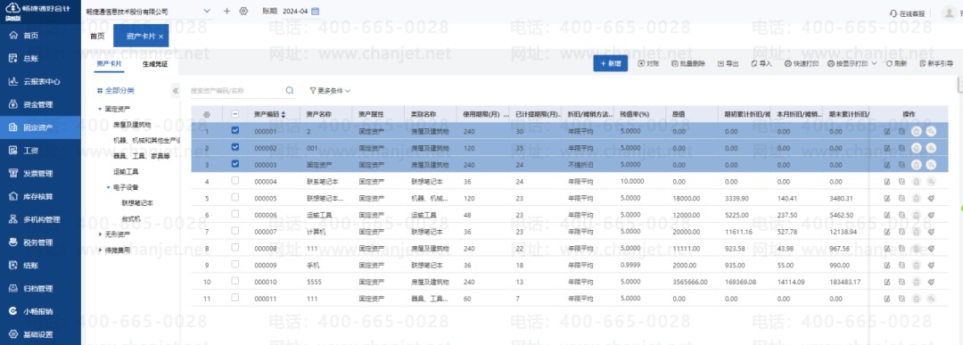 而云财务软件是可以批量处理固定资产的折旧、变更和报废,并且每月还能自动生成折旧凭证。