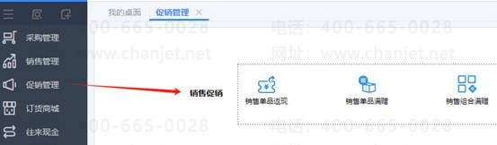 2、打开促销管理,如图下可以看到有三钟促销方式:销售单品返现金,销售单品满赠,销售组合满赠。