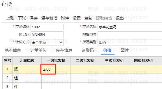 再来验证一款商品,如图下蒙牛花生奶,批发价为2,在促销期间为九折即为1.8,如图下操作: