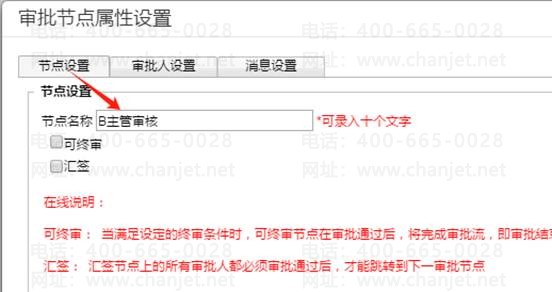 6、进入审批节点属性设置,节点设置处录入节点名称,如B主管审核