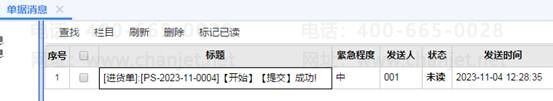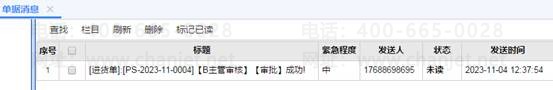 11、审核后这个消息就会自动发回给制单人了,制单人登录软件就可以看消息提醒了,如图下: