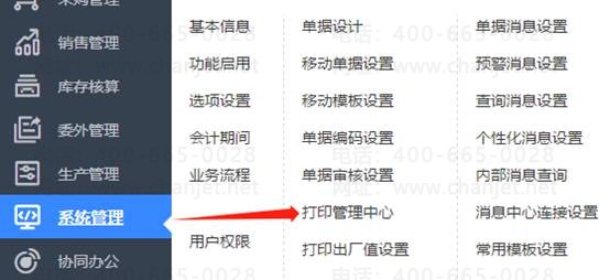 2、现在要求审核后才能打印销售订单,鼠标点击系统管理-打印管理中心,如图下: