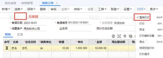 1、如图下,在无审核的情况下,可以直接打印销售订单