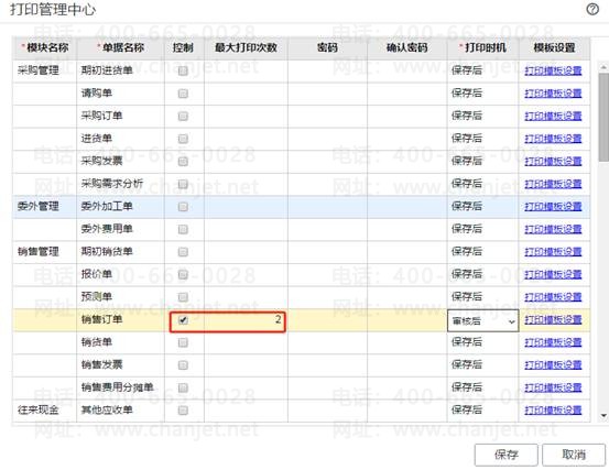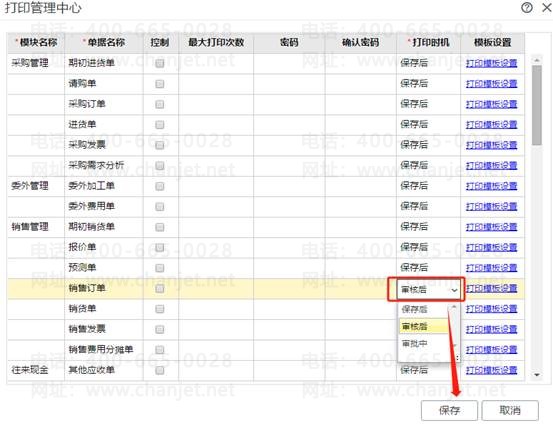 3、找到销售订单,打印时机处选择为“审核后”并保存,如图下:
