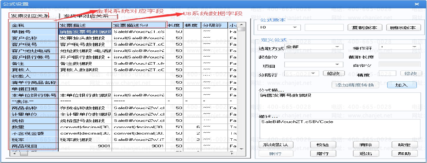 2、当金税系统与U8不在一起,可以使用文本传输接口。 文本接口U8对应的金税接口字段关系如下:接口可以根据发货单或者发票去对应,去设置数据源字段与金税字段对应。(一般不用设置,系统预置了)