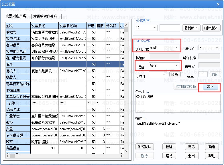 当选取方式为全部时,将字段数据源设置为对应金税接口的字段。