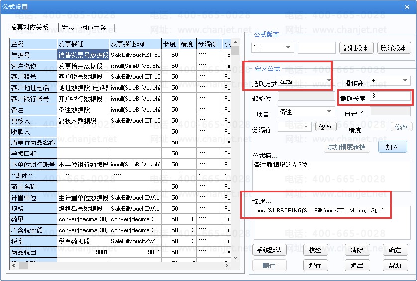 截取长度:[选取方式]='左取/右取/截取'时可录入要截取的长度。