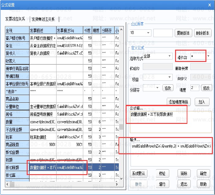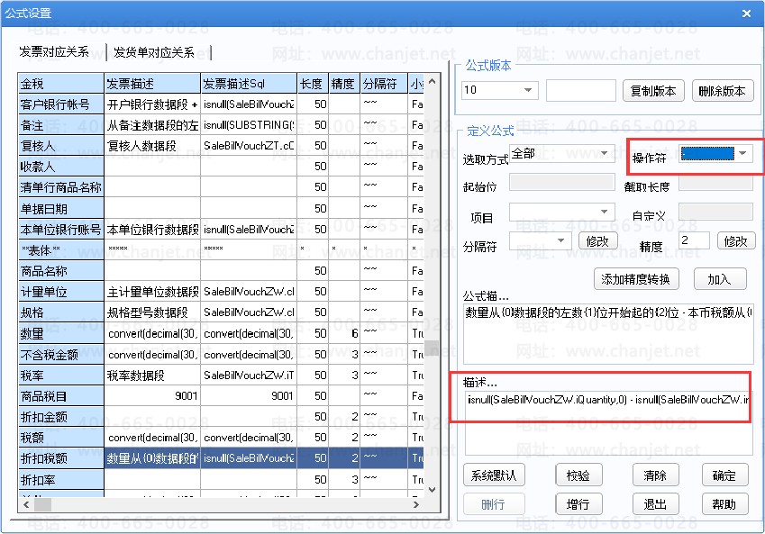 当操作符为减号“-”  时,都是数值型的字段连接是可以计算的,输出时根据公式设置将对应字段进行减法计算后输出