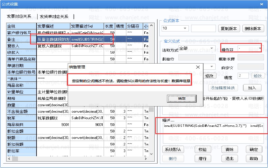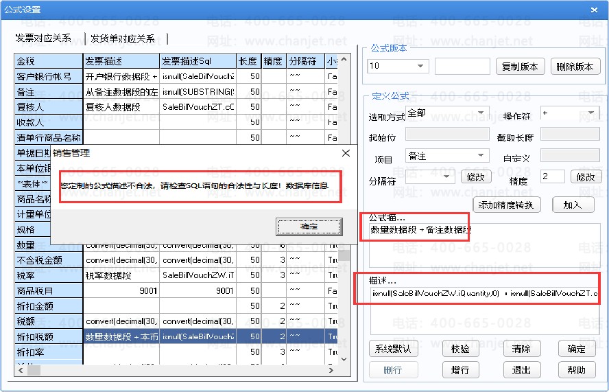会提示公式描述不合法  当操作符为减号“-”  时,都是字符型的字段连接也不支持减号,同样会提示公式不合法
