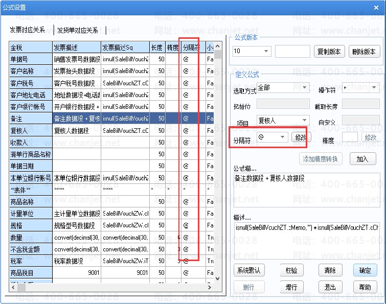 分隔符:按〖修改〗录入,修改左侧表格的[分隔符]。