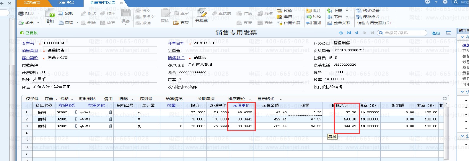输出时系统根据相同的存货+单价的行,将数量、金额进行合并加在一起进行汇总输出