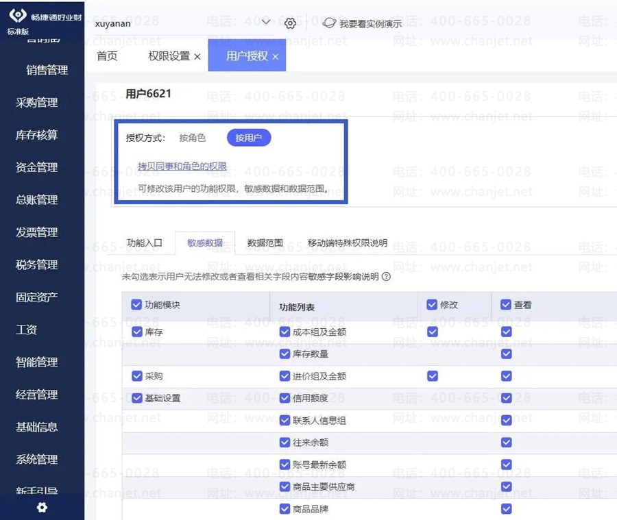• 公司一般都有敏感数据,尤其是成本、利润、客户数据等是公司最重要的资产。对于业务员和库管这些角色,举例不需要了解采购成本,只知道数量即可,针对这种情况,好业财系统内支持针对不同用户设置不能查看的敏感数据,当对应角色打开系统时,敏感数据会自动加密