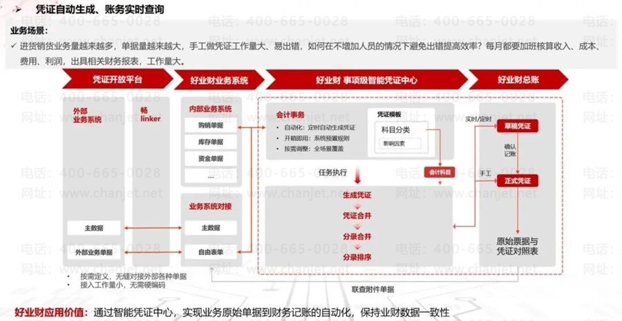 • 提高财务工作效率:在日常经营过程中,无需操作多套系统,可由业务单据直接生成凭证,减少手工做凭证的错误率。