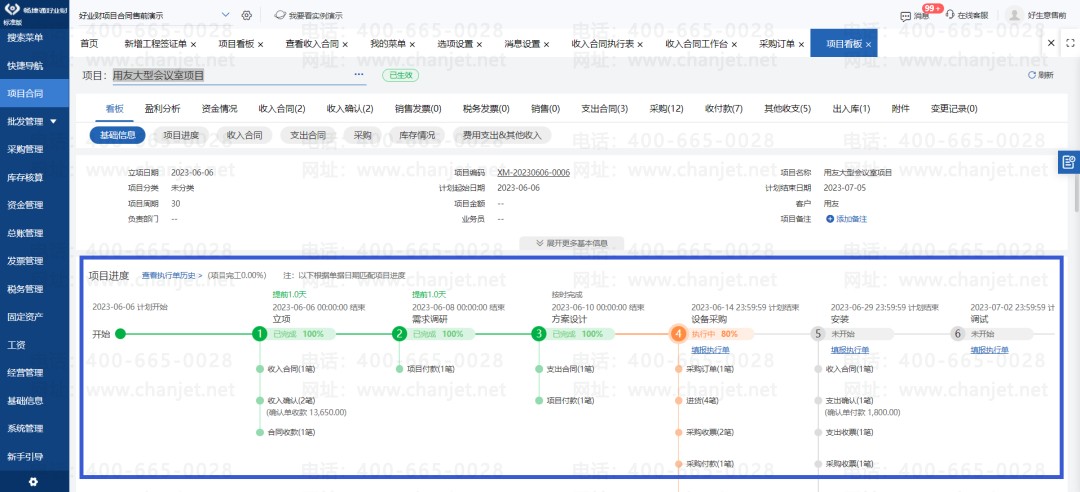 一个合同从立项到验收交付涉及多个进度,项目历程需全程跟踪。