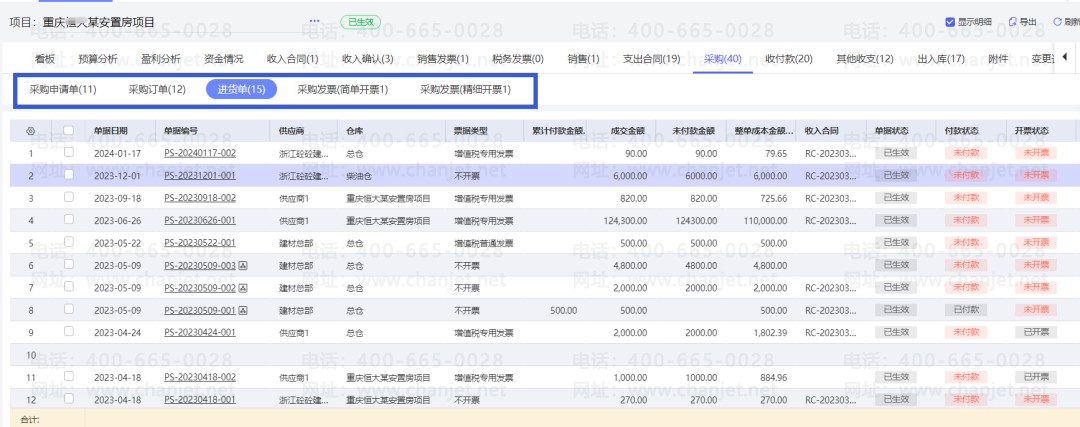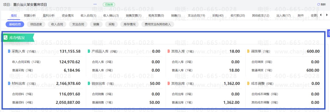 一个项目看板查采购-出入库汇总