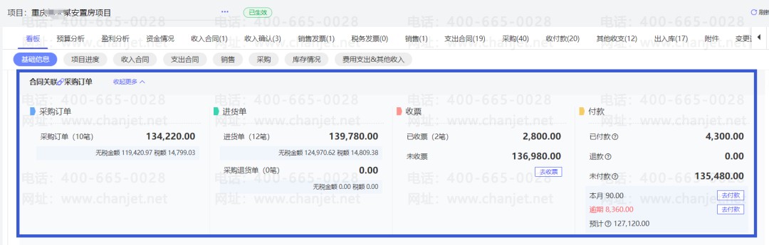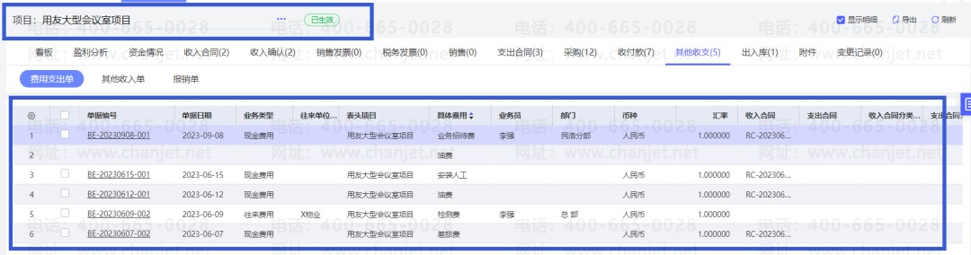 3.按项目核算费用,报销方便,成本归集实时