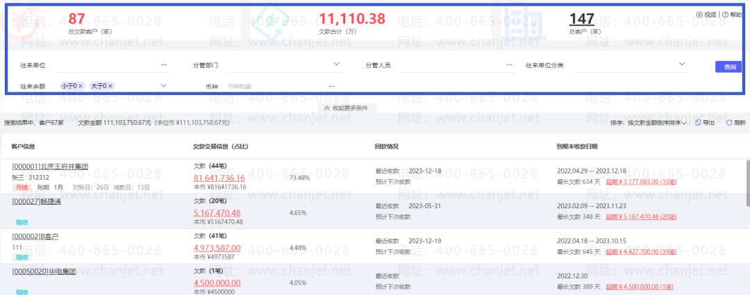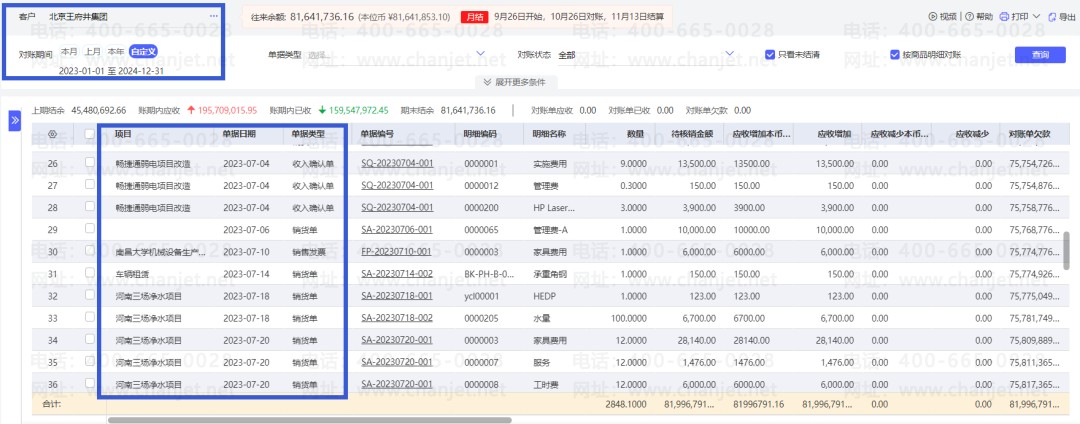 好业财:根据客户销货单实时按天/周/月/年,实时统计有多少项目、合同款是多少-应收是多少-已收多少。实时出具客户度账单,手机端和电脑端,客户都能直接对账。