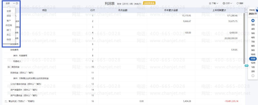 难点:企业很难根据部门、业务员、客户等多维度统计财务报表