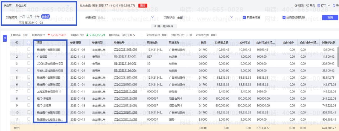 供应商对账单,可按项目统计