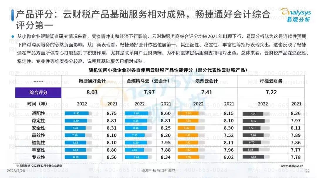 用过T1、T3、T6、T+等系列软件的老会计可能知道畅捷通,畅捷通是用友旗下成员企业,专注于小微企业财务软件,好会计就是专门为企业会计设计的软件,做了多年的优化,易用性和口碑上都得到了不错的反馈,获得了2022年易观分析财务软件品牌榜中云财务软件综合评分第一。