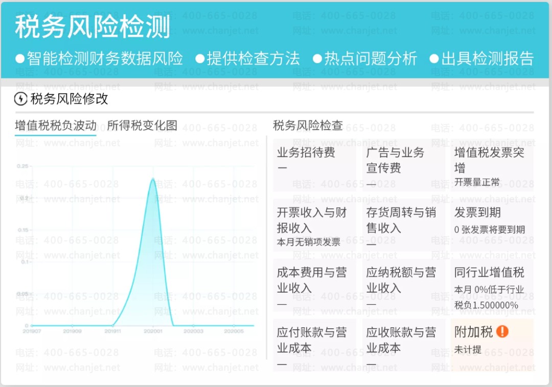税务风险预警:与金税重点指标保持一致,智能检测财务数据风险。