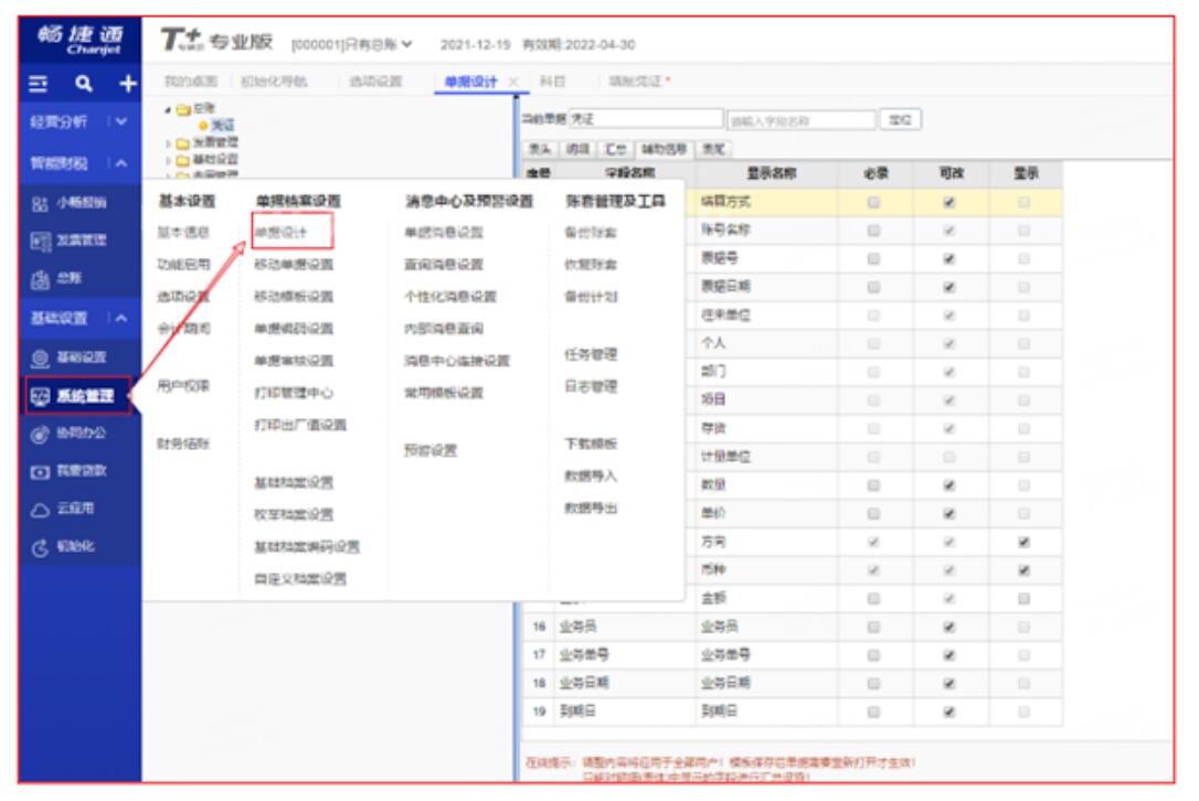 1、点击系统管理-单据设计,进入单据设计页面。