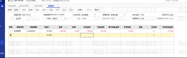 新增费用单,费用参照选择小畅报销,新增红字报销单,保存,审核。
