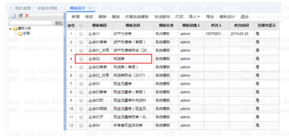 1、打开【T-UFO】-【模板设计】,双击打开【利润表】模板;