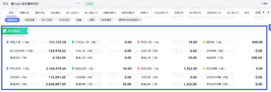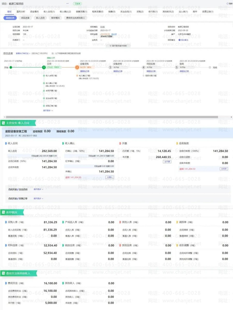 王总说:“每个项目的阶段进度图、合同款、收入确认额、支出确认额、材料采购入库明细、材料出库明细、各项费用明细等如何清晰统计,项目利润如何实时核算?”
