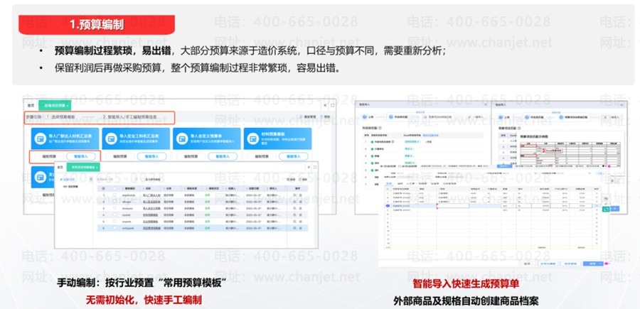 好业财支持售前预算编制:支持手工编制,更支持智能导入,比如广联达、鸿业系统等预算直接能导入进来
