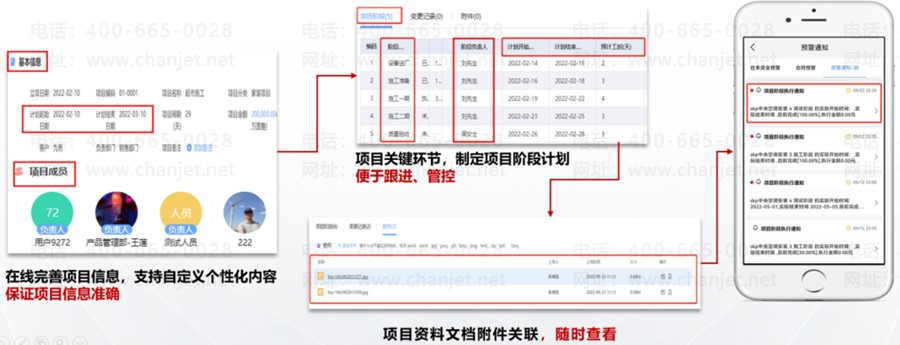 各部门协同效率低,移动办公要求高:项目关联人员及部分较多,项目进度协同不了,项目成员出差多,移动办公是刚需