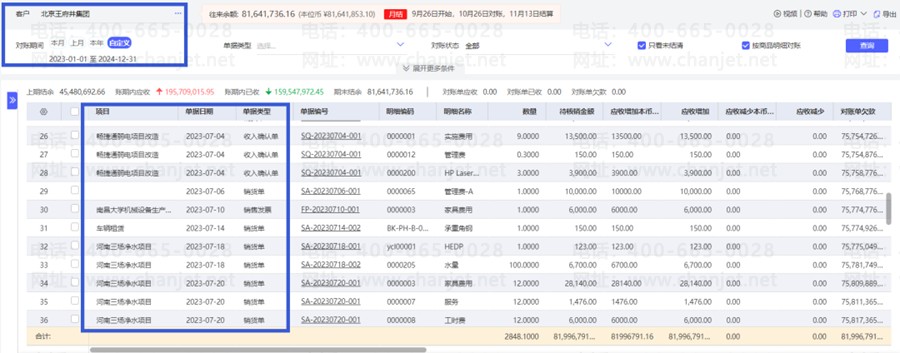 好业财可根据客户收入合同、进货单,实时按天/周/月/年,实时统计有多少项目、合同款是多少-应收是多少-已收多少。实时出具客户度账单,手机端和电脑端,客户都能直接对账。