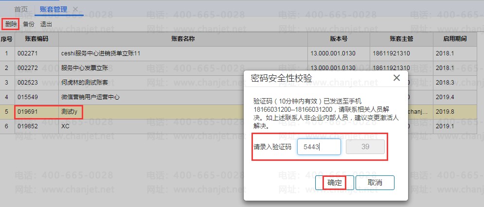 目前T+CLOUD创建、上传账套需要进入正式使用通过激活人员手机账号验证后操作,而备份、删除账套则需要以企业管理员身份登陆后通过激活人员手机账号验证后来操作。