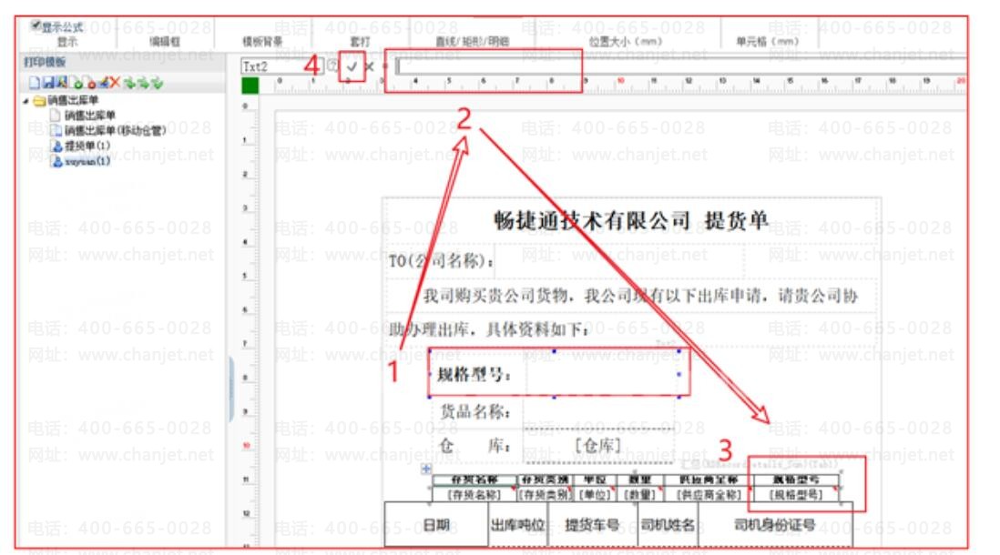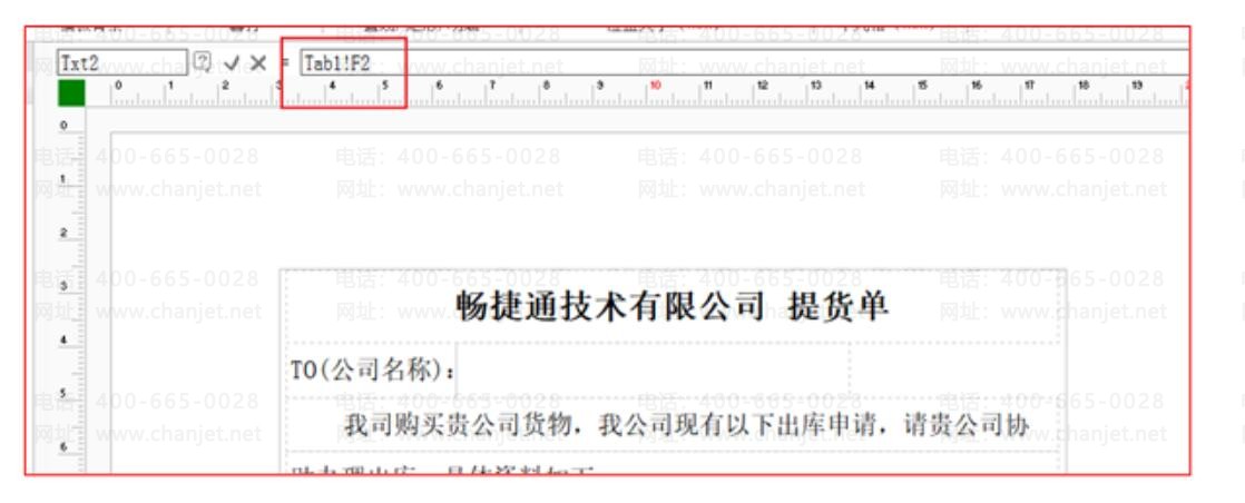 4、这时公式框会显示规格型号所在明细表的定位,文本框就能取到明细表字段的值了。