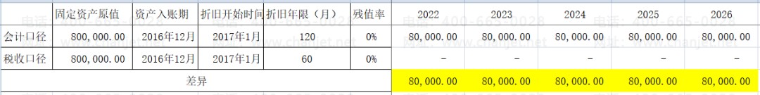 注意,这个时候当年就产生差异了,差异就是税法当年允许扣除的折旧8万和会计核算折旧的16万的差异,8万元。