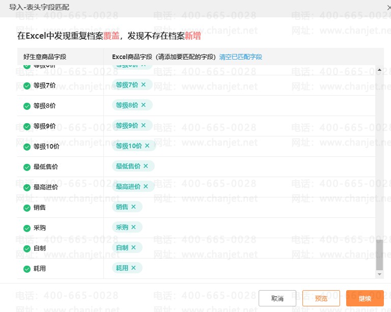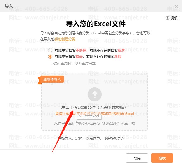 3.导入商品若有重复,是按商品编码来识别的,重复档案按商品编码重复来判断。