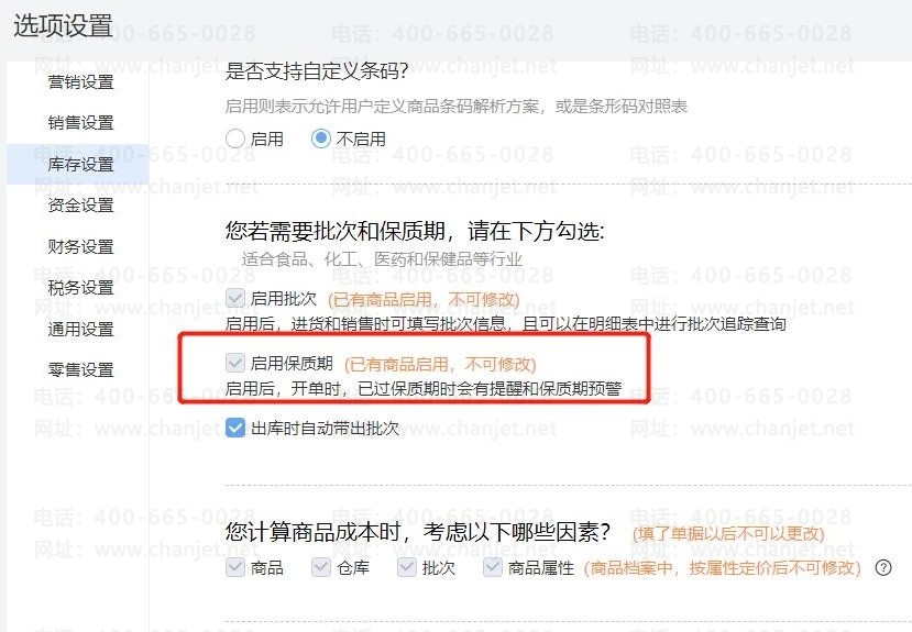 点击【好业财】-【系统管理】-【选项设置】-【库存设置】,勾选【启用保质期】